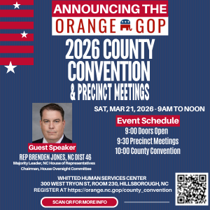 The Orange County GOP will hold its county convention on Saturday, March 21. Now is the time to get involved if you want to make a difference in our community. Your help is needed to make a difference in this fall's elections, so please join us!